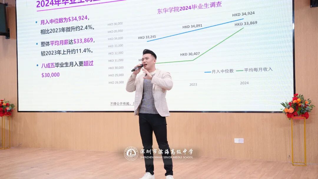为进一步让我校学生、家长及教师深入了解东华学院,校方特别组织了一场专场宣讲会。会上,东华学院老师全面介绍了学院的办学特色、优势课程(涵盖医疗健康、管理、人文社科等领域)、师资力量、校园设施及学生在港学习生活情况,重点推荐了与内地课程衔接紧密、具备独特优势的学士学位课程,为学生赴港升学提供了清晰指引。