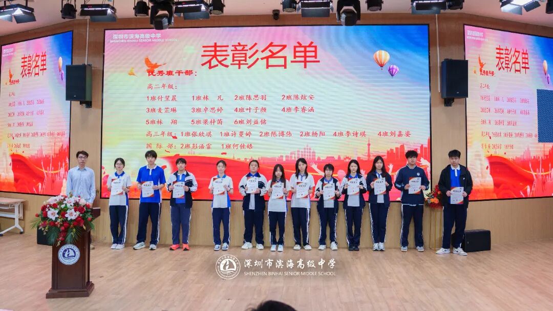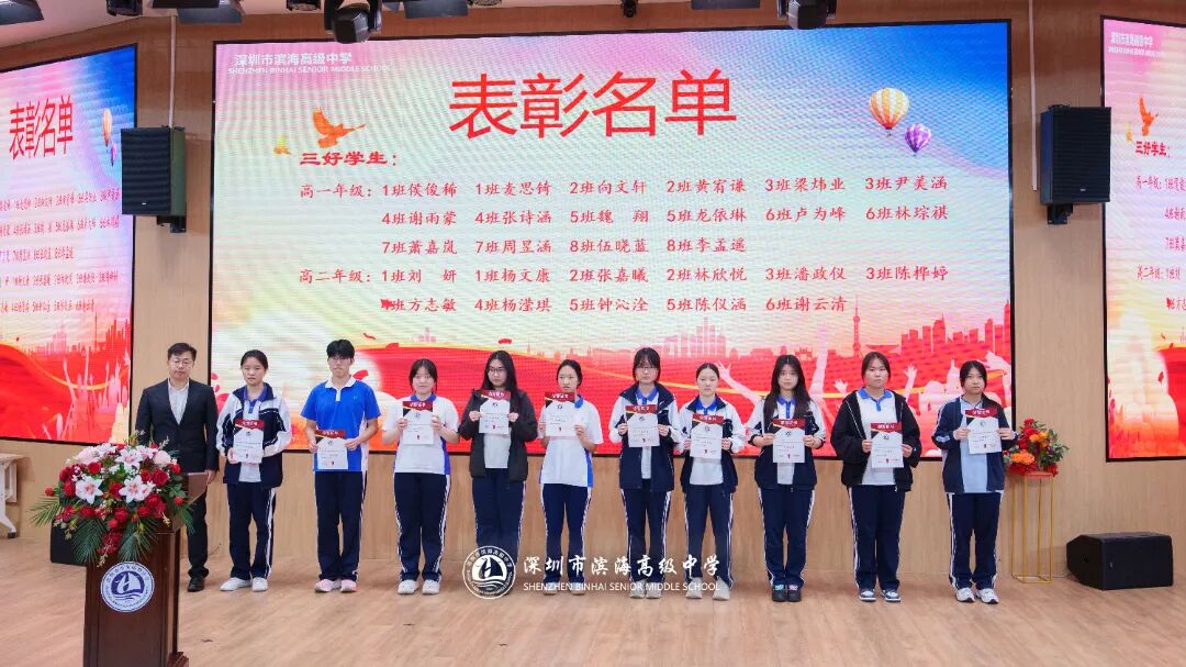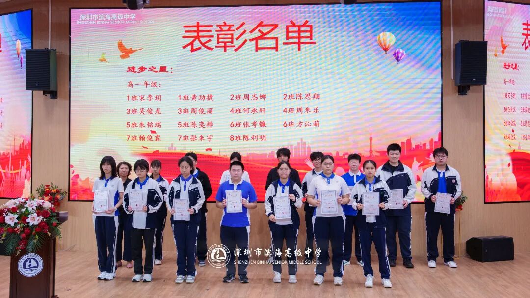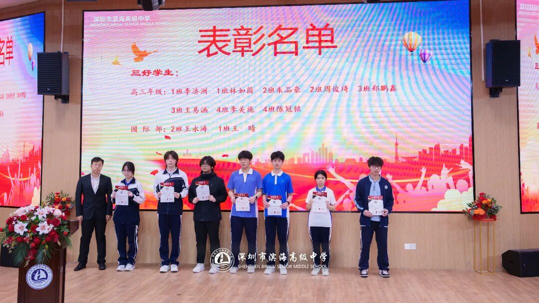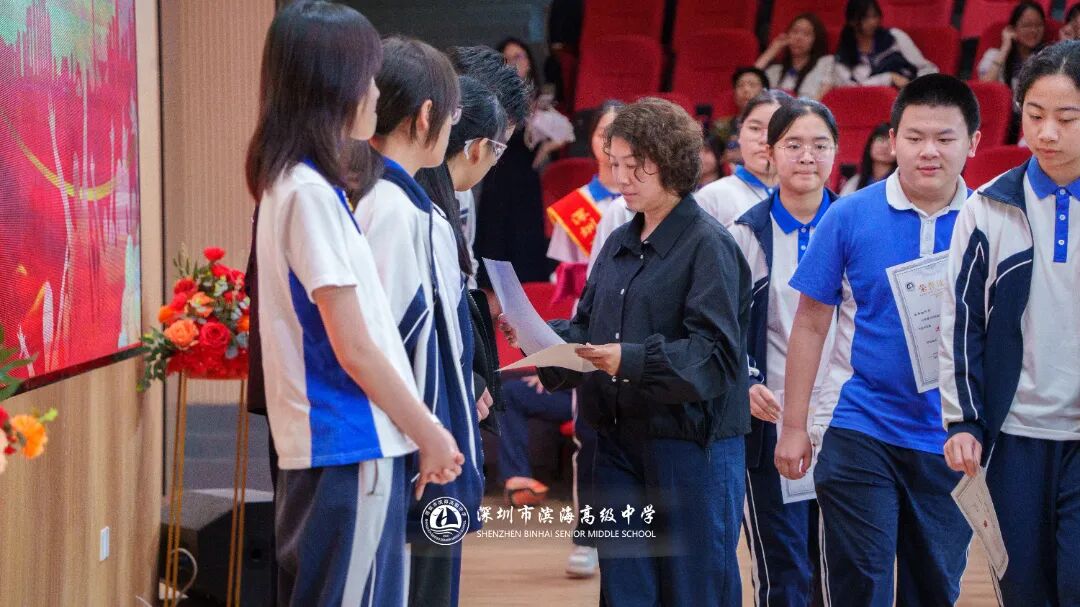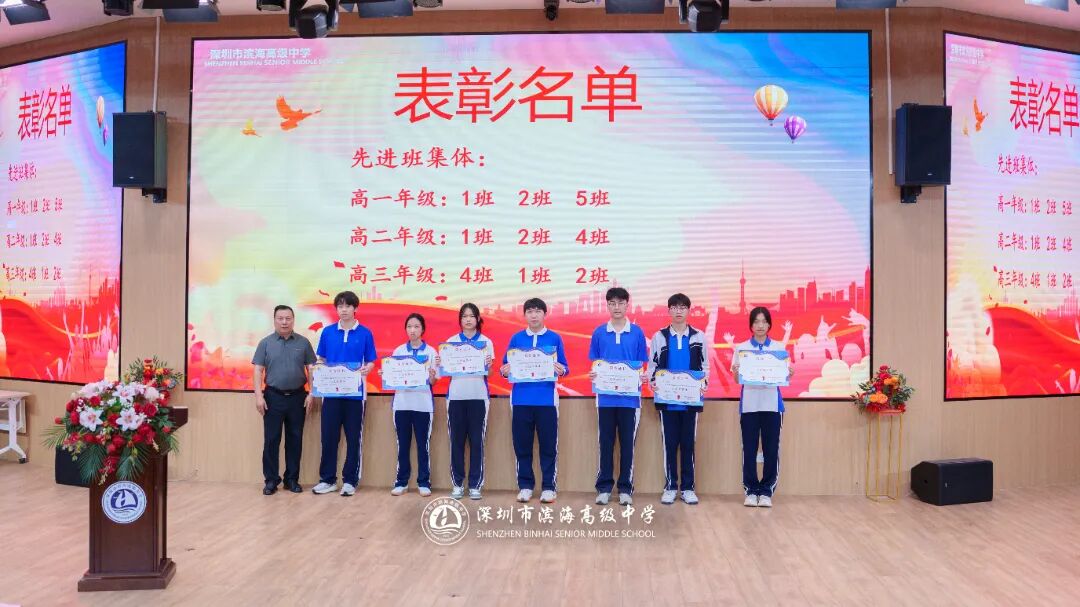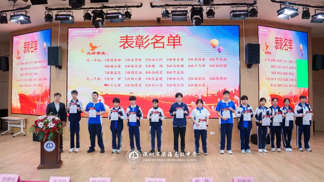 开学典礼上,学校对上一学期表现突出的先进集体和个人予以表彰。本次表彰涵盖先进班集体、德育标兵、先进个人、三好学生、优秀班干部、进步之星、优秀国旗队队员、优秀学生会干部、新媒体优秀干部、文明宿舍等多个奖项。获奖代表依次上台领奖,现场掌声不断。一张张荣誉证书,见证着学子们的努力与成长,也激励着全体滨海人见贤思齐、奋勇争先。