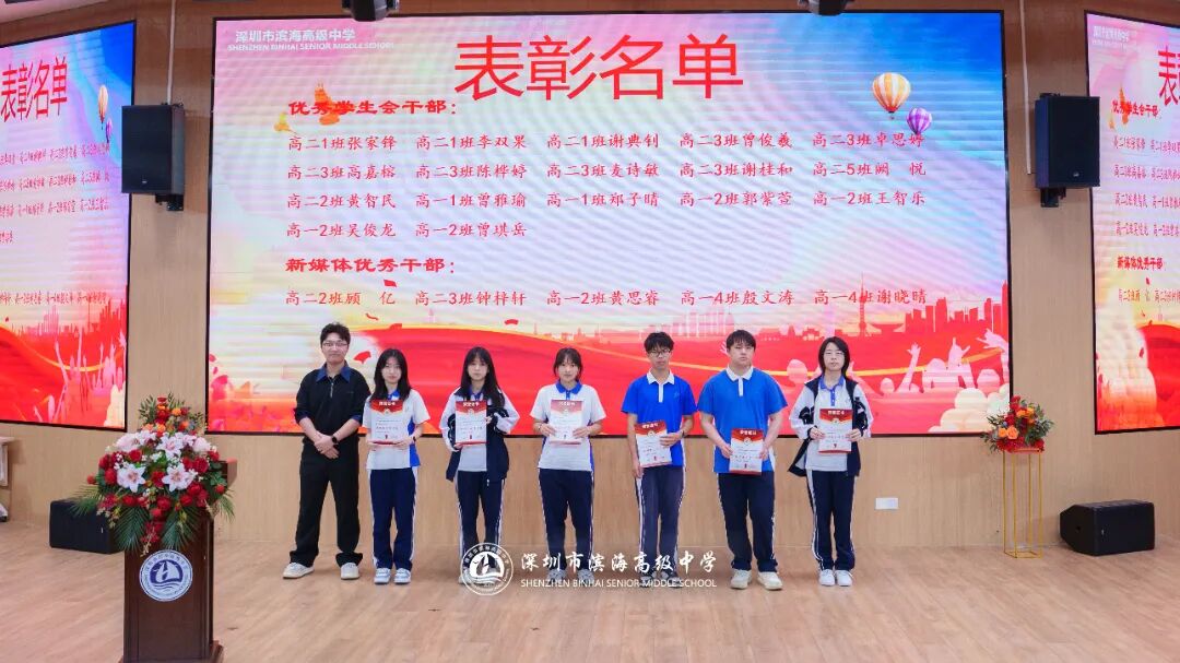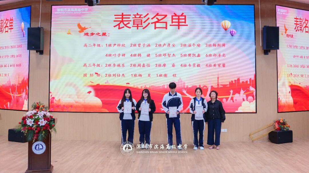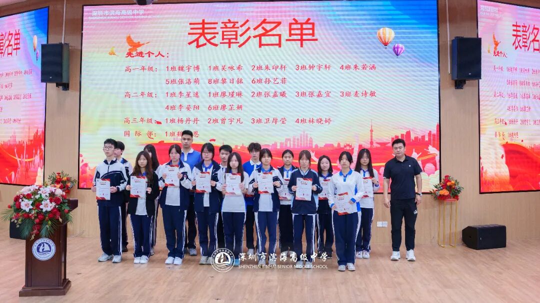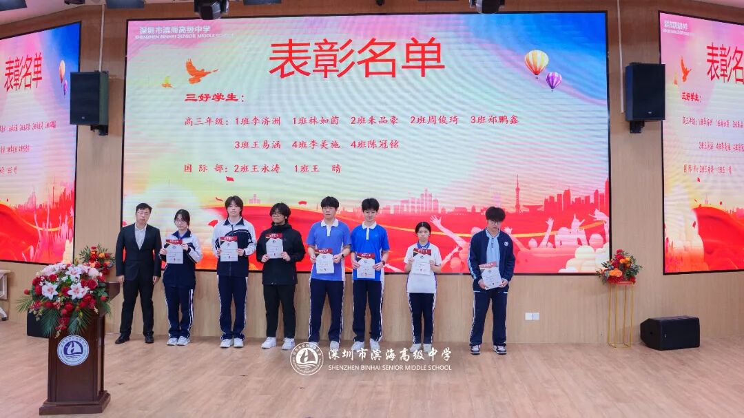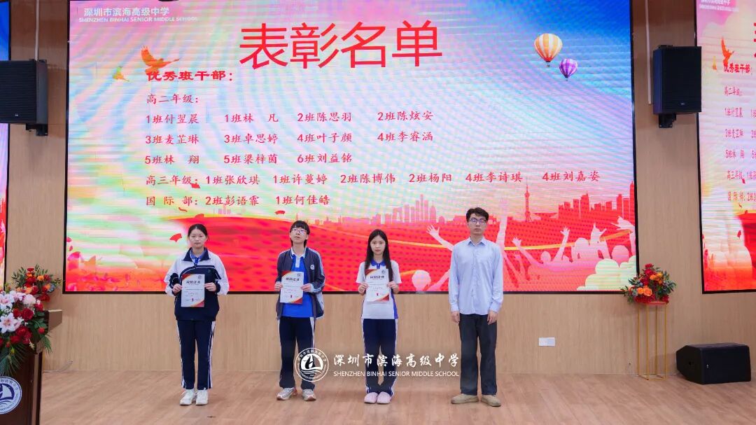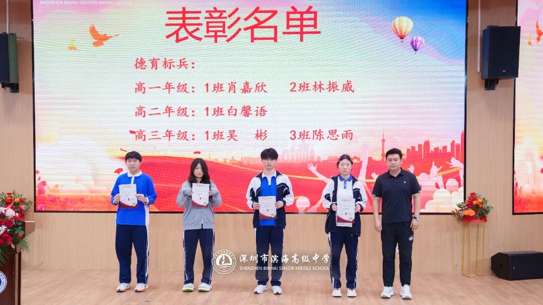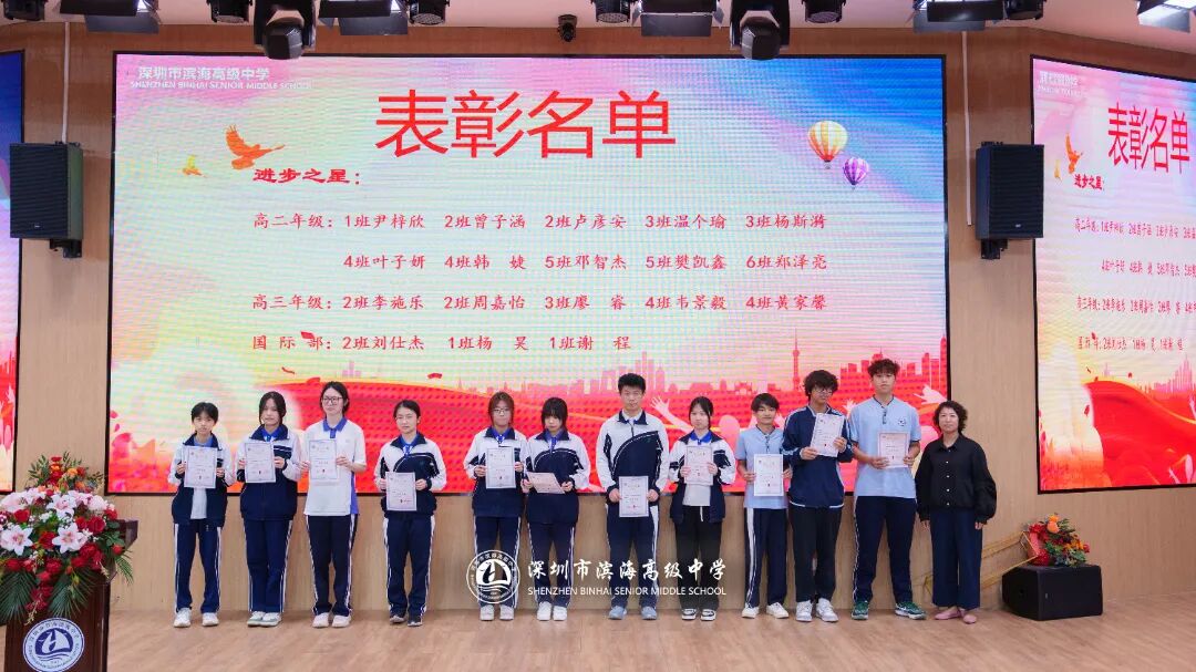 开学典礼上,学校对上一学期表现突出的先进集体和个人予以表彰。本次表彰涵盖先进班集体、德育标兵、先进个人、三好学生、优秀班干部、进步之星、优秀国旗队队员、优秀学生会干部、新媒体优秀干部、文明宿舍等多个奖项。获奖代表依次上台领奖,现场掌声不断。一张张荣誉证书,见证着学子们的努力与成长,也激励着全体滨海人见贤思齐、奋勇争先。
