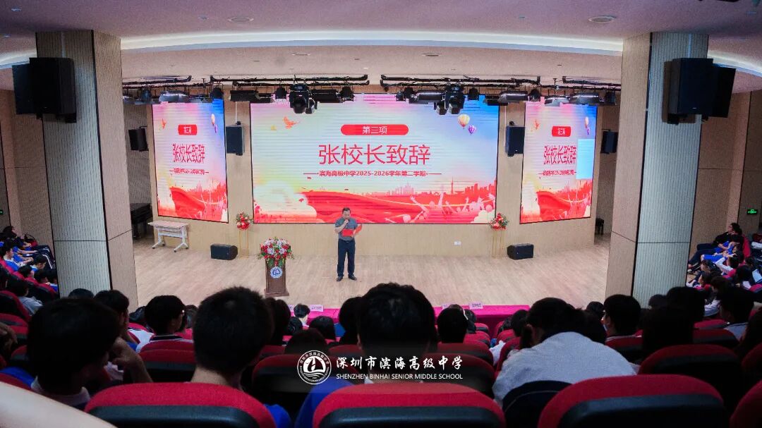 春回大地,万象更新。3月2日清晨,深圳市滨海高级中学全体师生齐聚校园,以昂扬的精神面貌共同迎来2025-2026学年第二学期开学典礼暨第一周升旗仪式。因天气原因本次仪式改在音乐厅举行,但庄严的氛围不减,师生的热情不减,伴随着雄壮的国歌声,五星红旗在心中升起,新学期的信念在脚下启程。