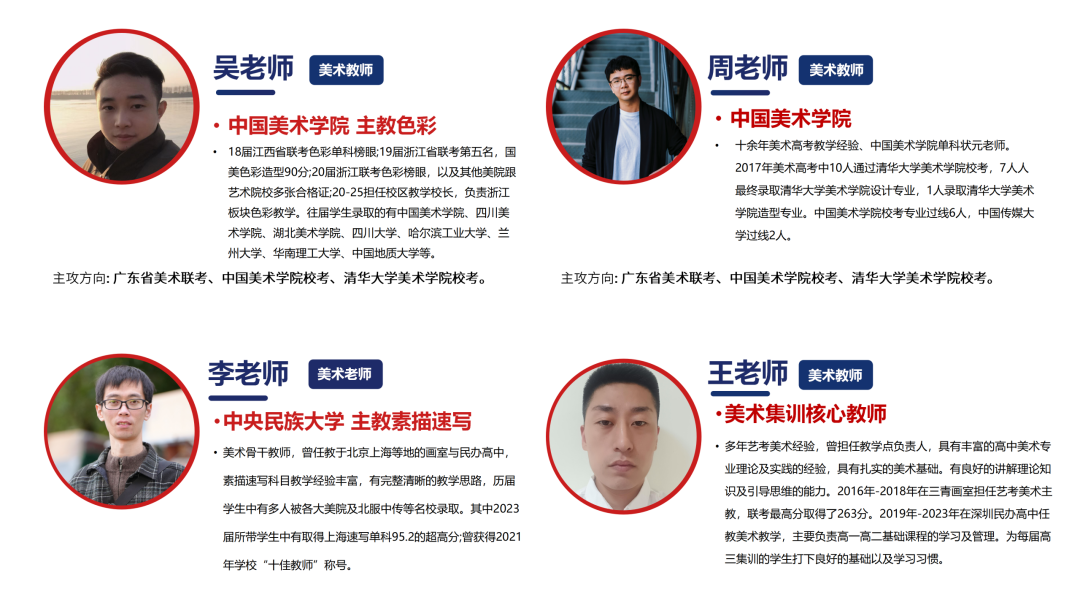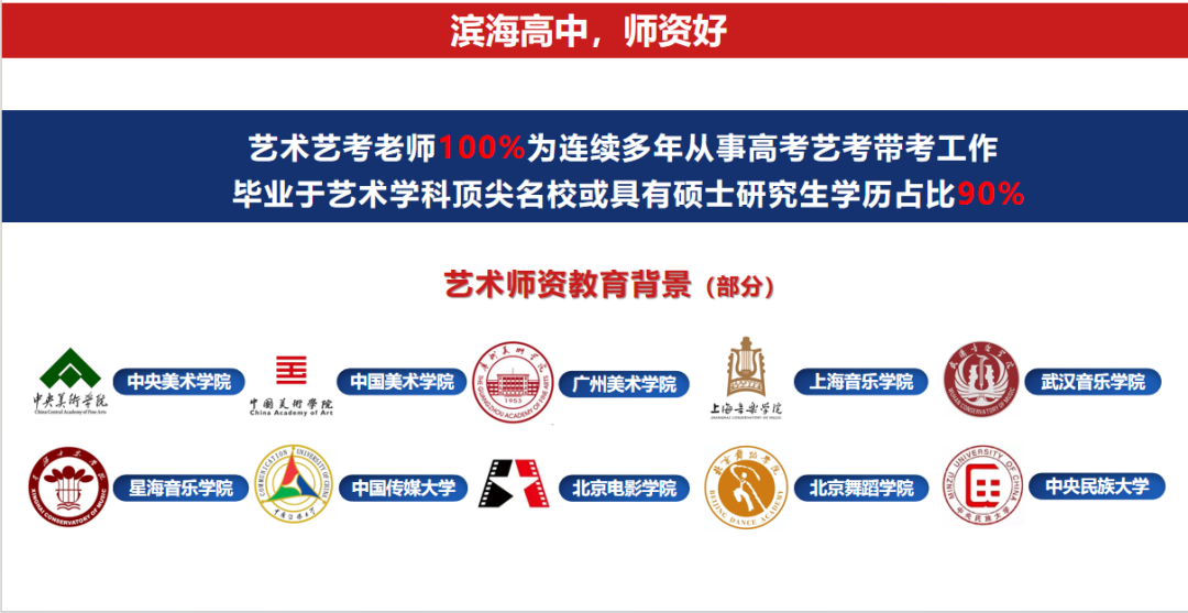 艺术师资同样雄厚,所有艺术教师均为连续多年从事艺考带考工作,90%毕业于国美、民大、中传、北影等艺术名校或具有硕士学历。雄厚的师资力量,为学生的文化学习与艺术成长提供了坚实保障。