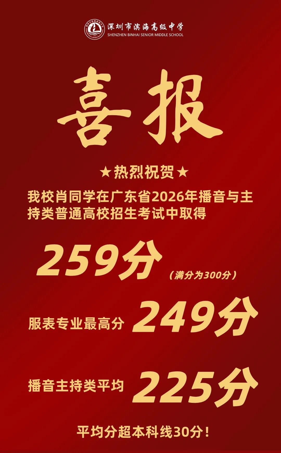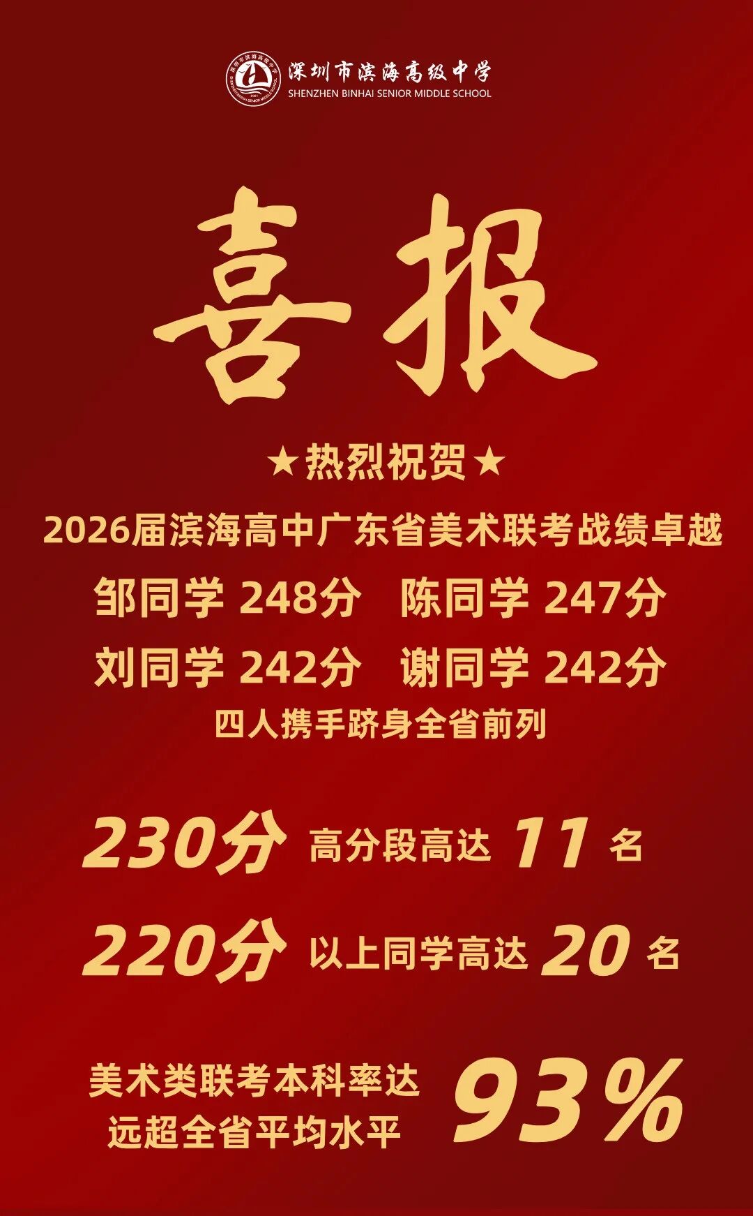 在刚刚结束的2026届广东省艺术联考中,滨海高中艺考生战绩亮眼,本科上线率在市区高中均为名列前茅,再创新高!